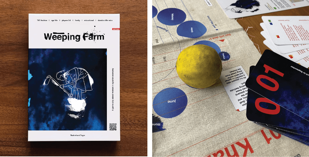 Weeping Farm explores the daily trials and tribulations of women farmers across India. Despite not being legally recognised as farmers, women are equal participants in farm labour. However, with evolving agrarian jurisdictions, privatisation, overdue debts, and climate change, farmers often face odds in making ends meet. Weeping Farm acts as an intervention to familiarise the players with the realities of rural life. Each player takes on the character of a woman farmer from across India for two farming cycles – or one year. At the end of 40 minutes, the player with the highest amount of debt is out of the game – signalling how every 40 minutes, a farmer commits suicide.